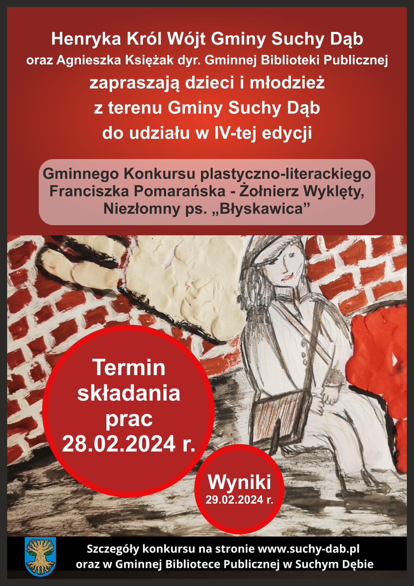 2024-02-14_KONKURS_LITERACKI_IV_Edycja_Franciszka_PomaranskaPobierz 2024-02-14_KONKURS_PLASTYCZNY_IV_Edycja_Franciszka_PomaranskaPobierz Załączniki: KONKURS_LITERACKI_IV_Edycja_Franciszka_Pomaranska KONKURS_PLASTYCZNY_IV_Edycja_Franciszka_Pomaranska Nawigacja wpisu SZKOŁA PEŁNA TALENTÓW Terminy rekrutacji na rok 2024/2025 do publicznego przedszkola w Szkole Podstawowej im. Obrońców Westerplatte w Suchym Dębie.