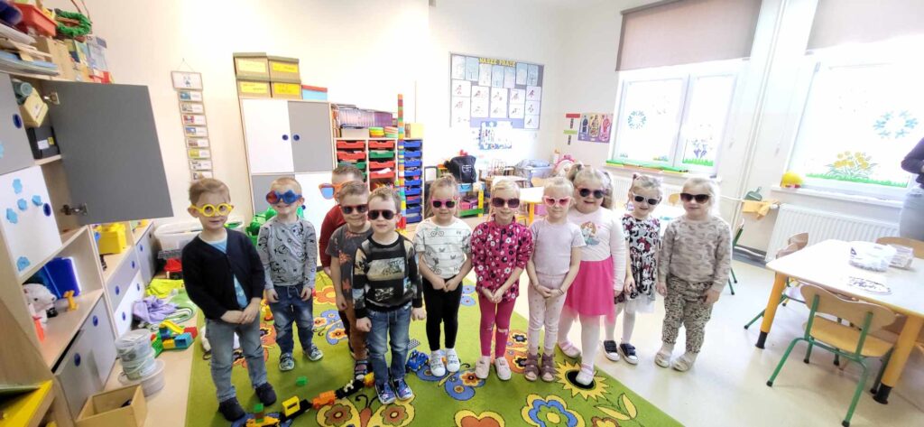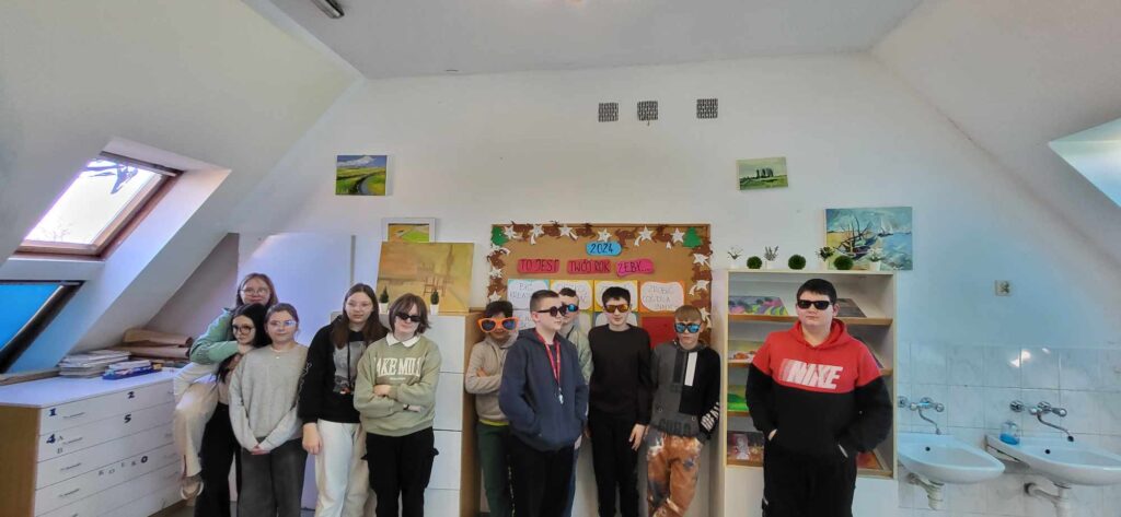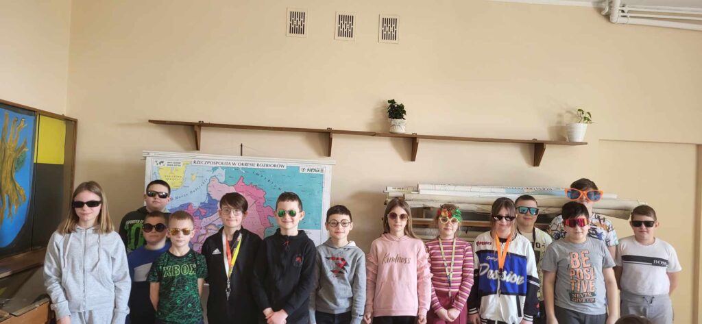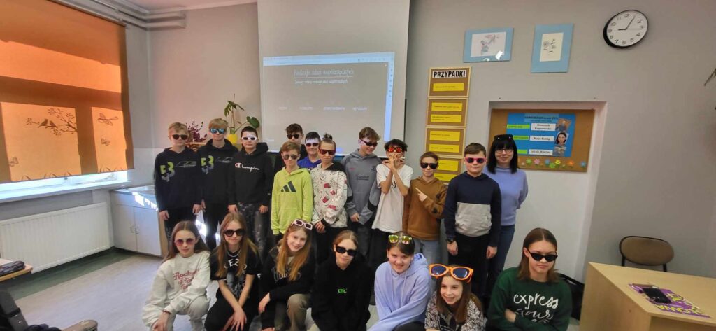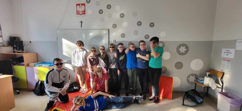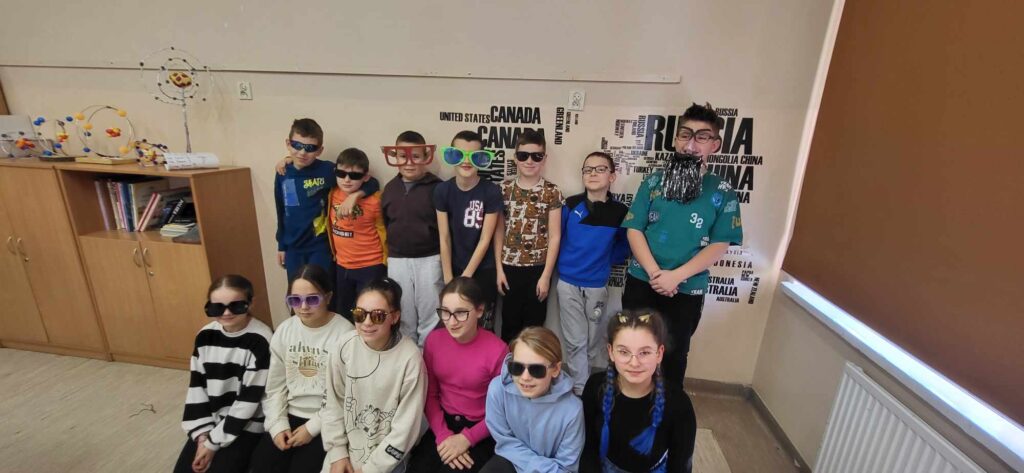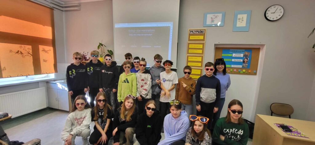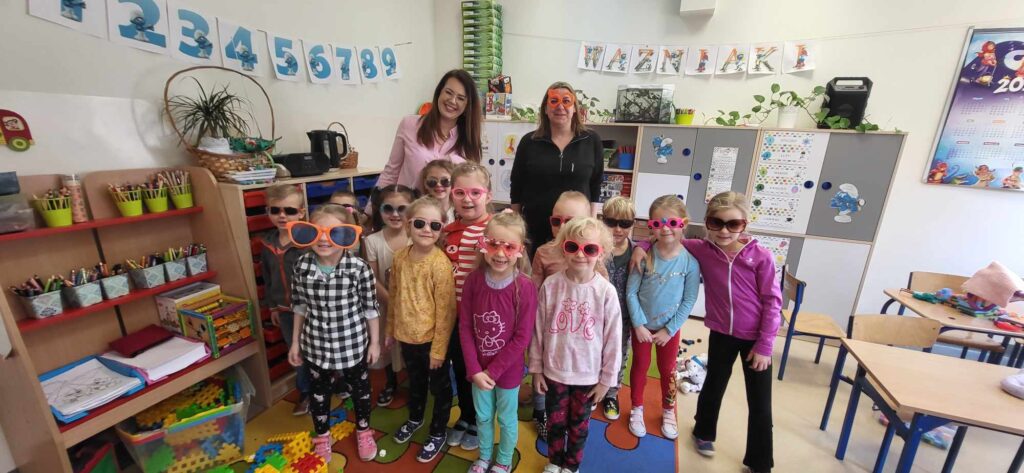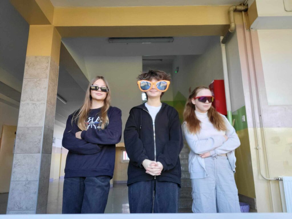 Środa była bardzo słoneczna, więc idealnie wpasowała się w „Dzień w okularach”, a uczniowie i nauczyciele wyposażeni w standardowe lub przeciwsłoneczne okulary ubarwili w tym dniu zajęcia szkolne.