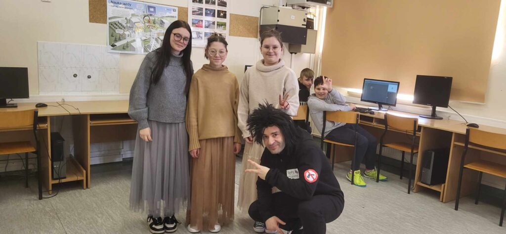 Czwartek jako „Dzień na odwrót” okazał się prawdziwym hitem, podczas którego uczniowie wcielili się w rolę nauczycieli i pracowników szkoły (a nauczyciele mieli okazję naśladować uczniów :-)). Co ciekawe, uczniowie mieli okazję dyżurować podczas przerw na korytarzu, a nawet poprowadzić fragmenty lekcji. Było przy tym niezwykle dużo śmiechu i dobrej zabawy.