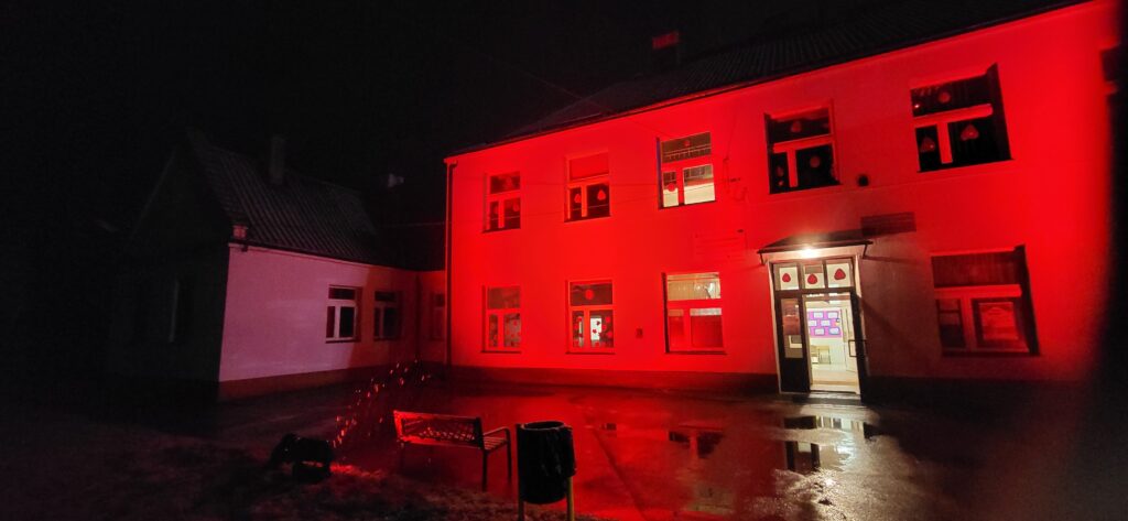 Budynek naszej szkoły i gminy  także „zapłonie „ na czerwono,  na znak naszego sprzeciwu wobec krzywdzenia dzieci.
