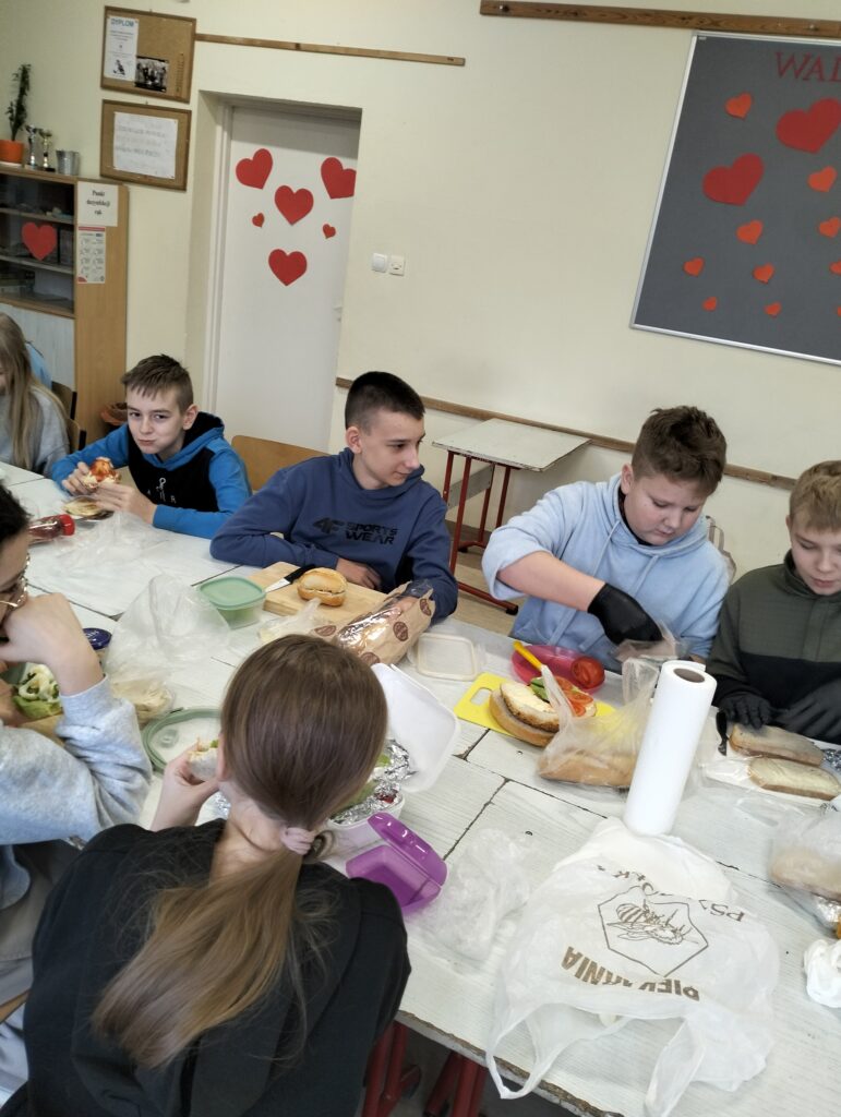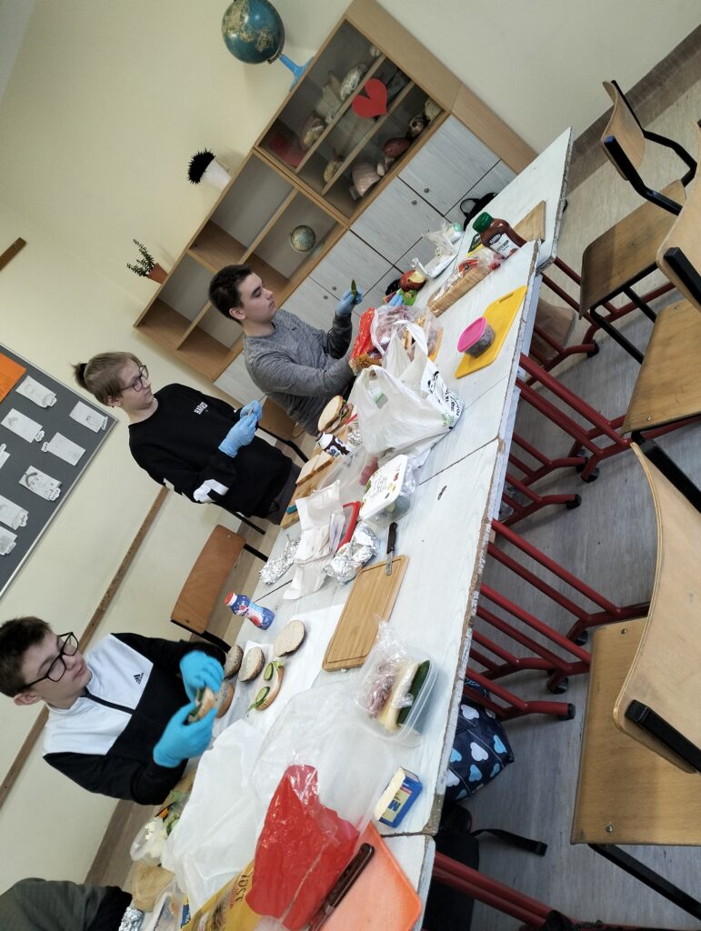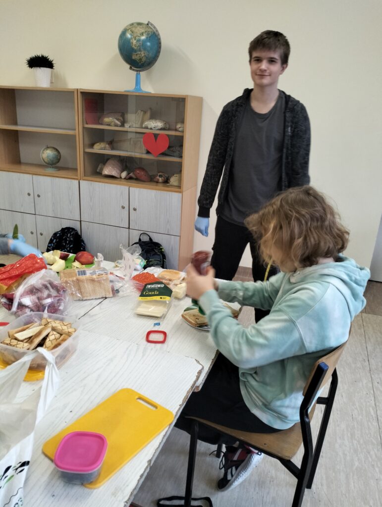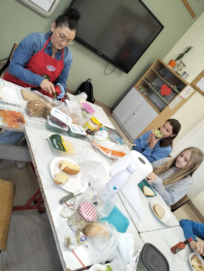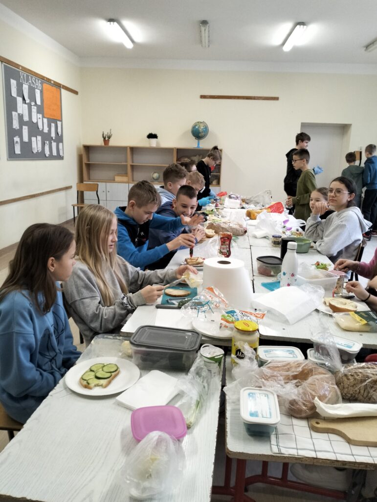 Dzisiejsza lekcja wychowawcza przebiegła po hasłem ,,KOLOROWO I ZDROWO”. Wspólnie przygotowaliśmy drugie śniadanie. Wszyscy udowodnili, że potrafią przygotować kanapki. Każdy przygotował takie, jakie lubi najbardziej. Było smakowicie i zdrowo. Myślę, że każdy zapamięta z dzisiejszej lekcji, że warzywa to cenny dodatek witaminowy do kanapek.