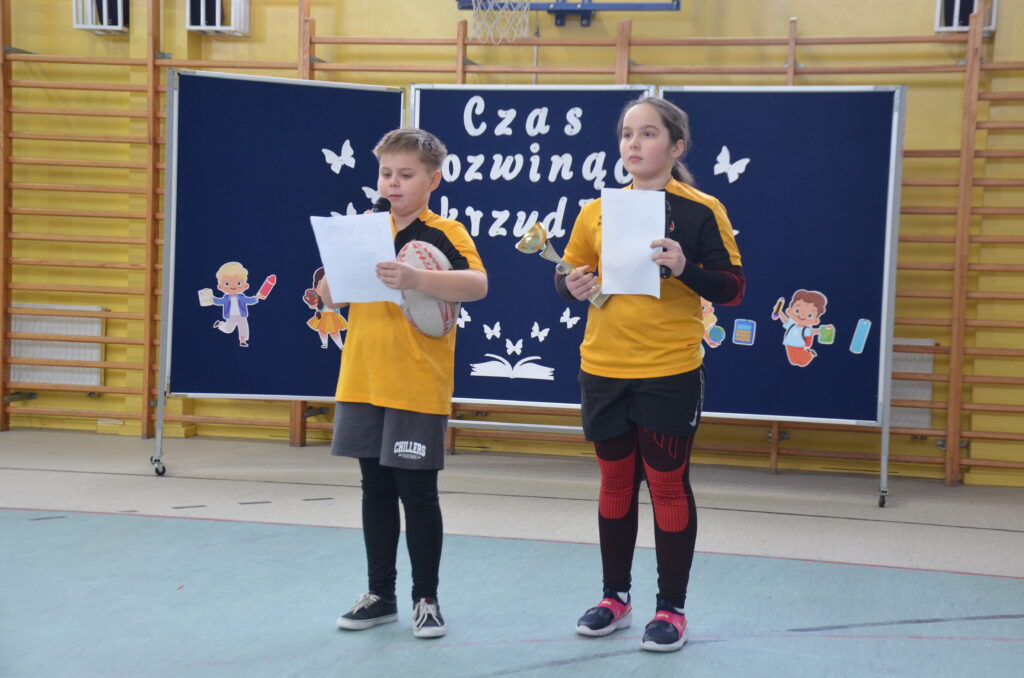 Dzisiejszy apel niewątpliwie umiliły nam występy taneczno-wokalne przedszkolaków i naszych najmłodszych uczniów z klas 1-3 i klasy 4b oraz występ rugbistów – Mai i Filip Kulig.
