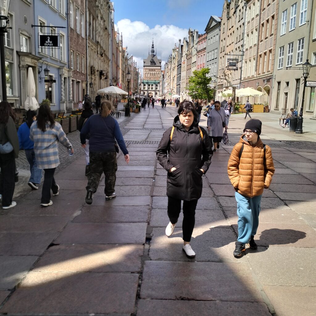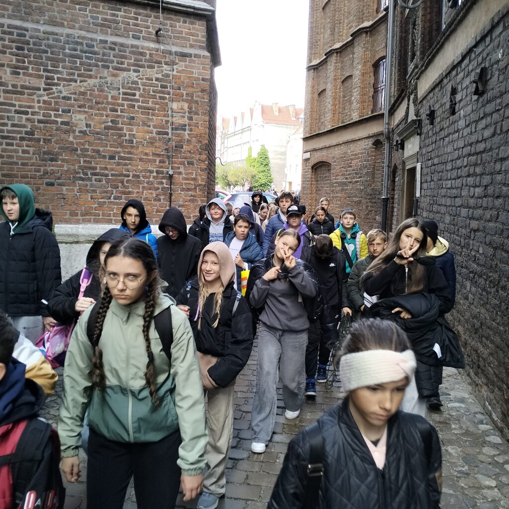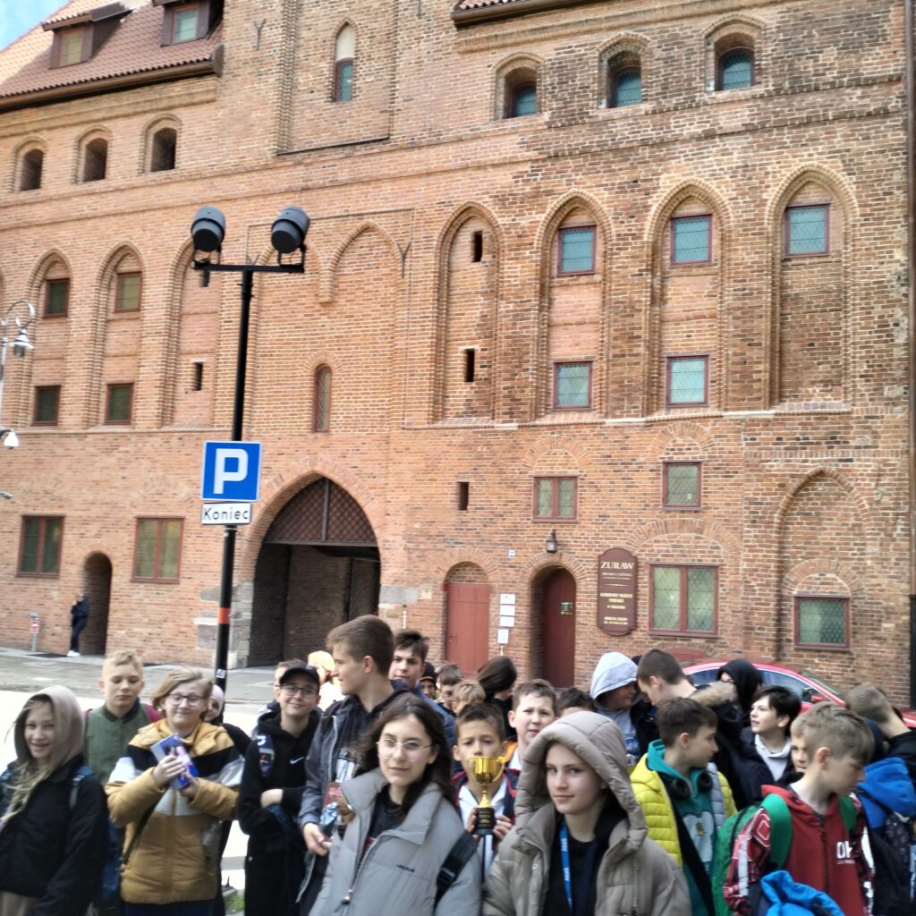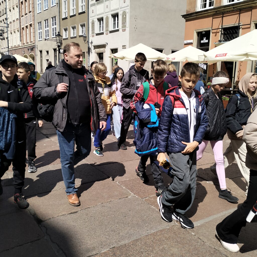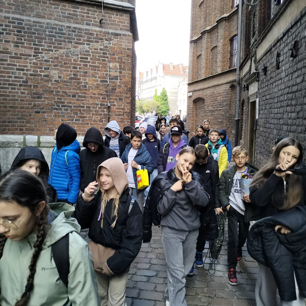 Kierując się dalej w stronę Motławy, podziwialiśmy piękne kamienice przy ulicy Mariackiej, z ich charakterystycznymi przedprożami, które dodają temu miejscu wyjątkowego uroku. Spacer zakończyliśmy przy Żurawiu – jednym z najstarszych i najbardziej rozpoznawalnych symboli Gdańska, który od ponad 600 lat góruje nad nabrzeżem. Dzięki starannemu remontowi, budowla prezentuje się dziś naprawdę imponująco. Idąc w kierunku ulicy Szerokiej mieliśmy okazję zajrzeć do wnętrza tego niezwykłego dźwigu portowego. Widoczny mechanizm Żurawia pozwalał nam wyobrazić sobie życie codzienne w gdańskim porcie, ciężką pracę ludzi sprzed wieków załadowujących lub wyładowujących towary z niezliczonych statków, cumujących przy nabrzeżu, przybyłych tutaj z różnych stron świata.