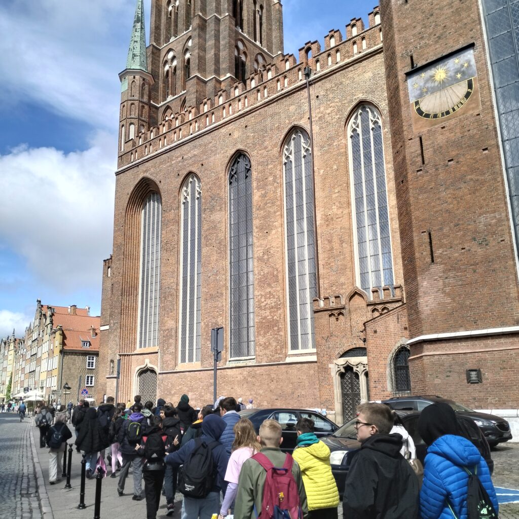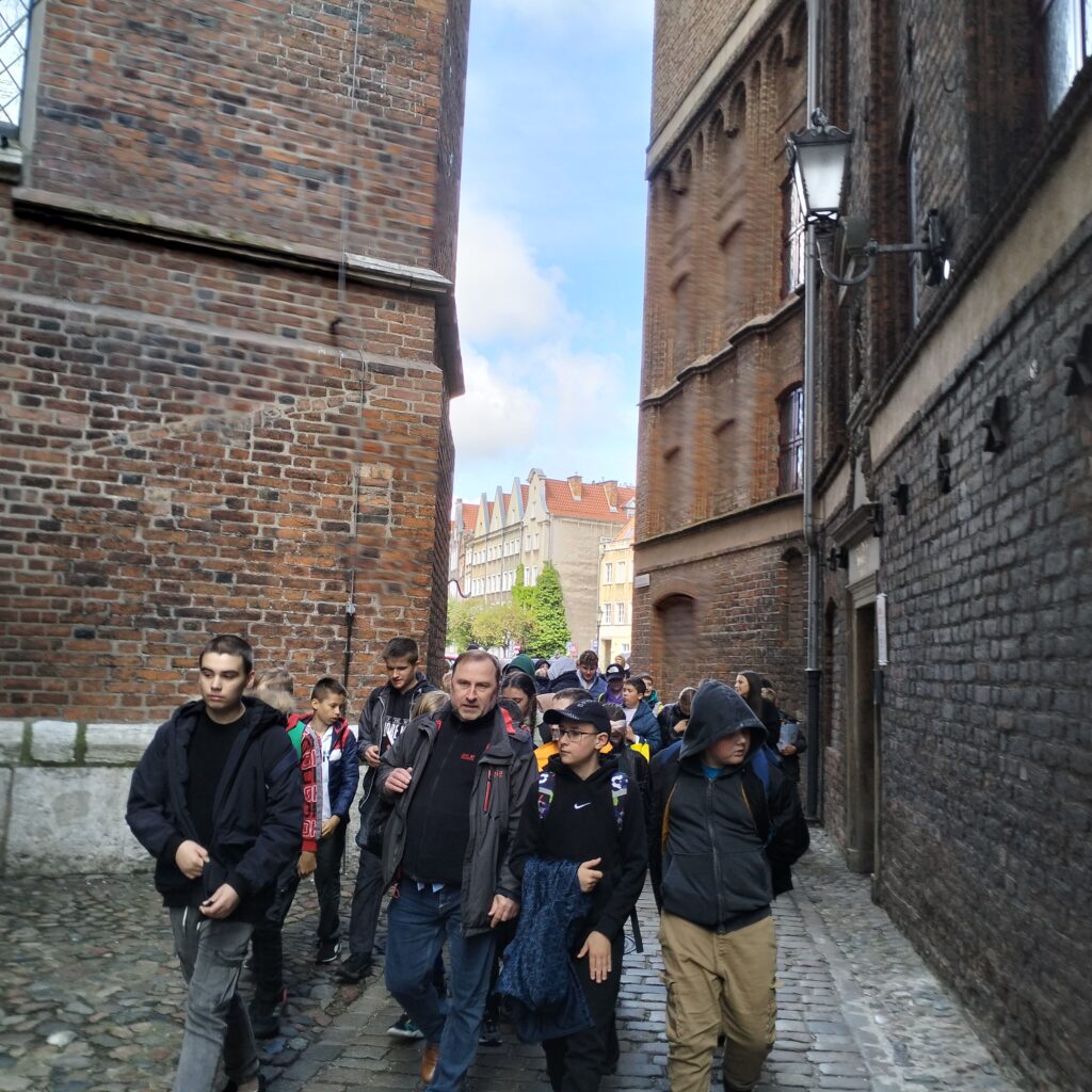 Po zakończeniu seansu, wybraliśmy się na krótki spacer. Naszą wędrówkę rozpoczęliśmy od malowniczej ulicy Długiej, by następnie skierować się w stronę Bazyliki Mariackiej. Tutaj przeszliśmy urokliwą, wąską uliczką o nazwie Plebania, która pojawia się już w dokumentach z XIV wieku. Jest to jedna z niewielu zachowanych średniowiecznych ulic Gdańska, a co więcej, powszechnie uznaje się ją za najkrótszą w całym mieście.