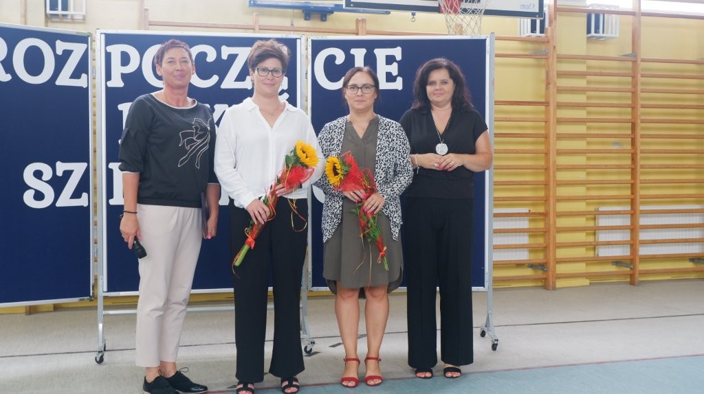 Wśród naszego grona pedagogicznego byli dzisiaj z nami nauczyciele, którzy w czasie wakacji dzięki swojemu profesjonalizmowi i zaangażowaniu w proces nauczania uzyskali kolejny stopień awansu zawodowego. Panie Joanna Halbecka, Paulina Skrzyńska, Monika Tarasiuk i Judyta Ramczyk przyjęły gratulacje od dyrektora szkoły.