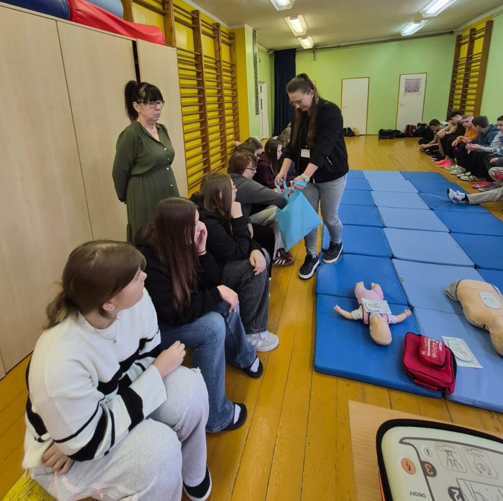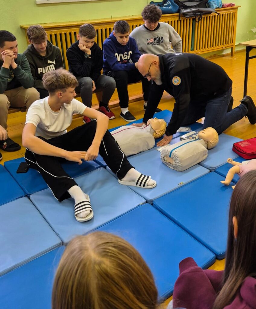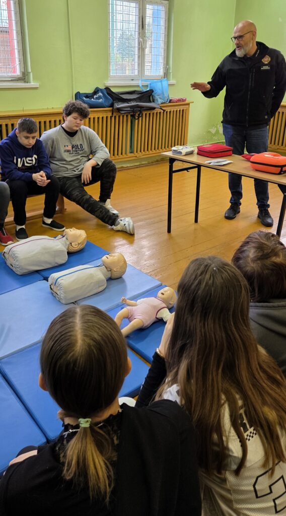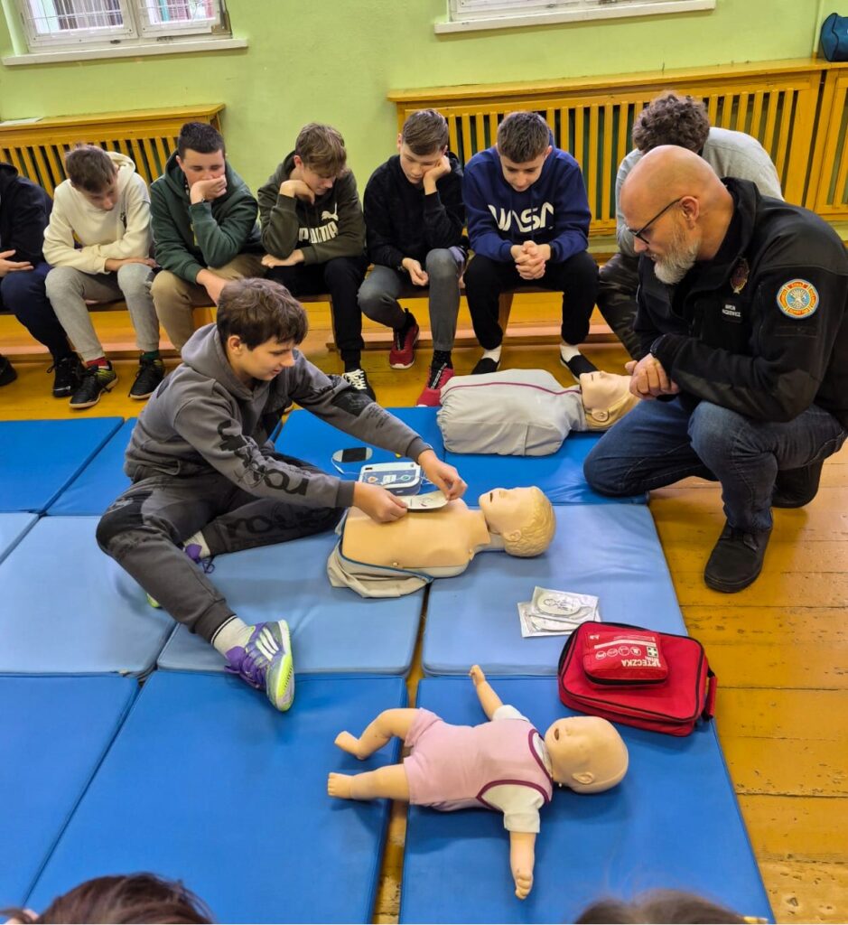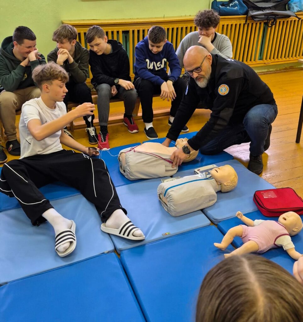 W dniu 30 października 2025 roku, uczniowie klas 8 wzięli udział w szkoleniu z pierwszej pomocy przy użyciu defibrylatora AED.